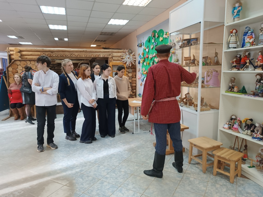 На следующей неделе в период с 24 и 25 октября при участии социального партнера техникума Управлением культуры, туризма и молодежной политики Администрации ГО Верхотурский для школьников была организована экскурсия в Верхотурский Дом народных промыслов и ремесел, где профессиональный экскурсовод Градобоев А.А. ознакомил гостей с экспозициями «Русская изба», «Народный костюм», «Гончарная мастерская», «Рукоделие мастеровое».