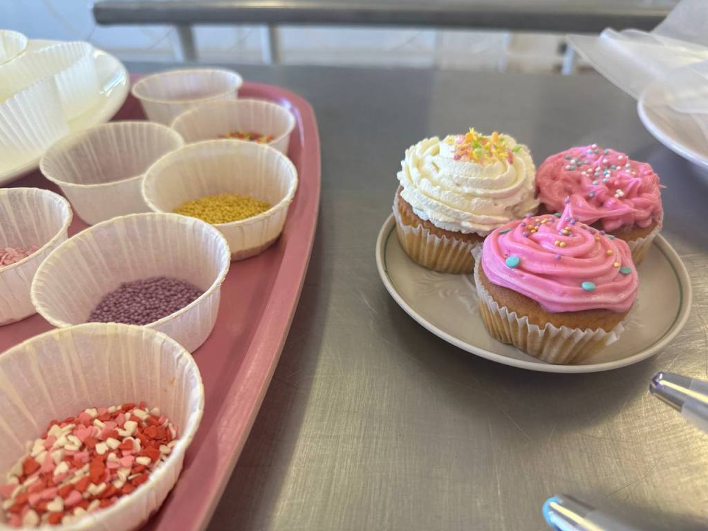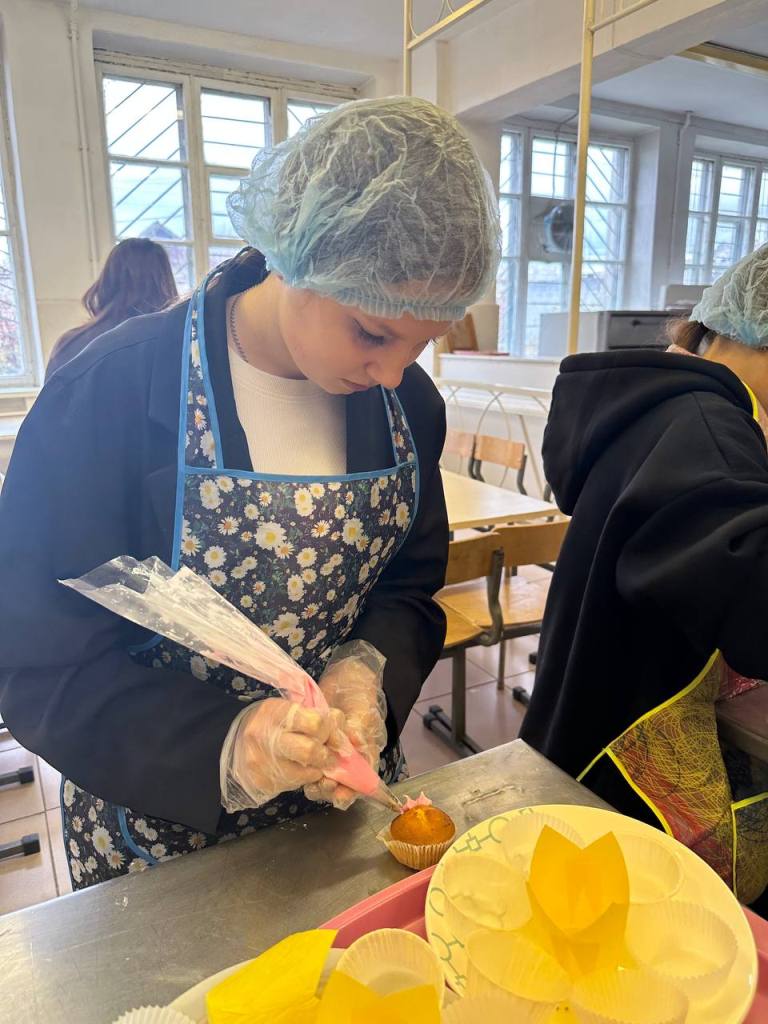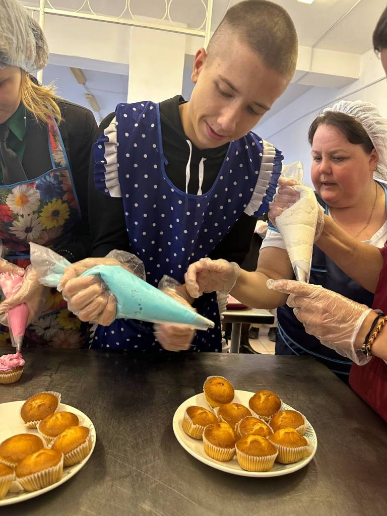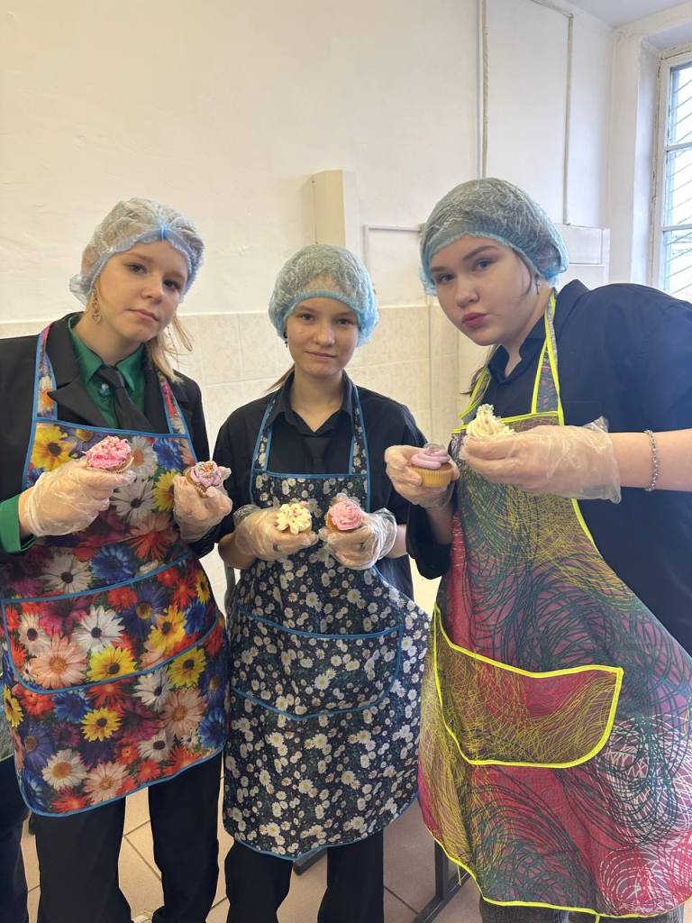 Преподаватель со стажем Лумпова М.В. провела для школьников виртуальную экскурсию в мир профессии «Кондитер», а затем под руководством опытного наставника Посаженниковой А.А. школьники в лаборатории «Кондитерский цех» приняли участие в оформлении капкейков.